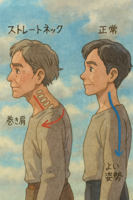 こうした習慣が続くと、首の自然なカーブが失われていきます。